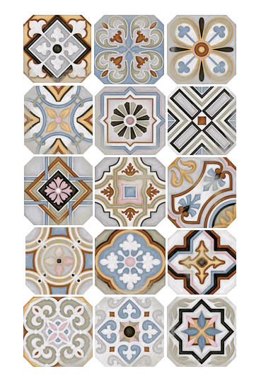 Octogon shape tile with 4 x 4cm taco insert available in Nube (pictured) and Antracita (charcoal).